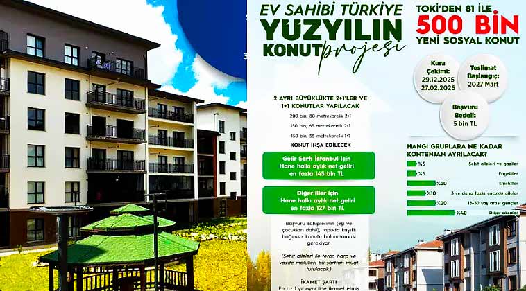 Cumhurbaşkanı Recep Tayyip Erdoğan bu projesiyle beraber bütün Türkiye Cumhuriyeti vatandaşlarını birer ev sahibi yapmayı hedeflediğini belirtti. bu proje aynı zamanda ülkeminiz en büyük toplu sosyal yapıt projesi olacak. yapılacak olan projedeki evlerin çoğunluğu 2+1 – 1+1 evlerden oluşacak, bu projeye bütün reşit vatandaşlar katılabilecek. bu projeyle beraber fahiş kira fiyatlarına son dedi.